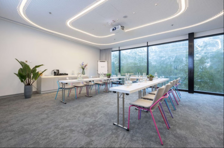 The Amsterdam Congress Center features meeting and event facilities across three floors, following light renovations completed in 2024 the venue offers more than 28,000 m² of flexible event space, including both indoor and outdoor areas suited to a wide range of meeting formats and group requirements. Across the venue, there are 20 modern meeting rooms, each named after a colour and featuring décor aligned with the hotel’s theme. The 680 m² Pearl Ballroom is at the core of the hotel, it can accommodate up to 708 delegates in theatre style, including 138 fixed seats on the first-floor balcony. The ballroom can also be divided into three equal sections of 235 seats each, with 46 fixed balcony seats per section.