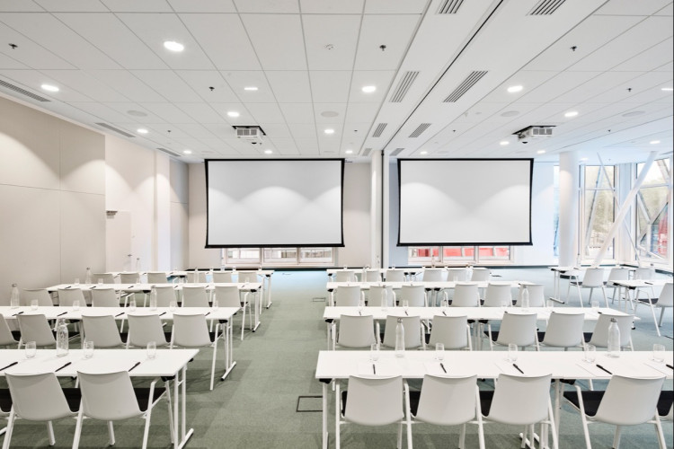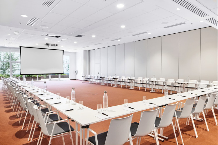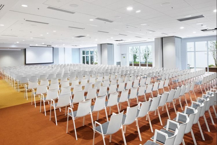 Internally, the design is modern and contemporary, with vibrant décor, high ceilings, and significant natural daylight in public and meeting areas on the first floor. The layout provides direct yet discrete access to the separate convention centre building, supporting a distraction-free attendee movement.
